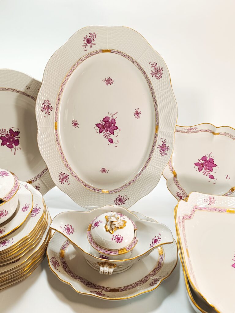 Наименование: Столовый сервиз на 6 персон. Годы изготовления:1949-1960-е года Страна изготовления: Венгрия Состояние: отображено на фотографиях. Близкое к идеальному. Позолота на всех предметах. Тончайший костяной фарфор. Клеймо на
